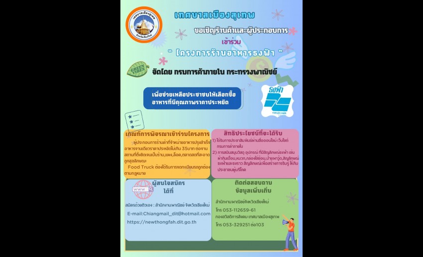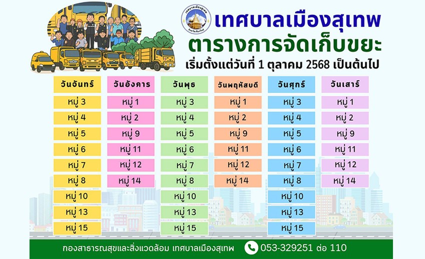 - รับฟังร่างวิจารณ์ ร่างเอกสารประกวดราคาจ้างฯ (e-bidding) และร่างขอบเขตงาน(TOR) ประกวดราคาจ้างโครงการจ้างเหมาเอกชนดำเนินการเก็บ ขน ขยะในเขตพื้นที่เทศบาลเมืองสุเทพ ประจำปี พ.ศ.2569 (15 ตุลาคม 2568)