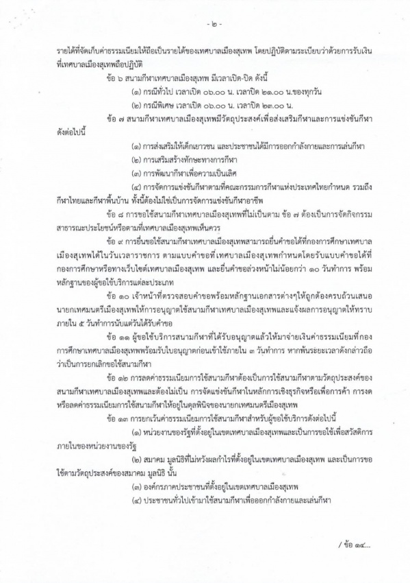 ระเบียบเทศบาลเมืองสุเทพ ว่าด้วยหลักเกณฑ์และเงื่อนไขทั่วไปการขอใช้สนามกีฬาเทศบาลเมืองสุเทพ ประจำปี 2569