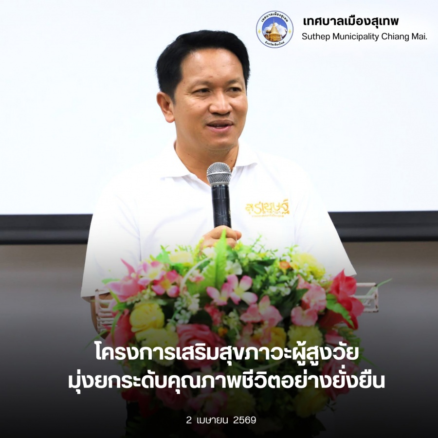 วันนี้(2 เม.ย.69) นายสุรเชษฐ์ ตาคำมา นายกเทศมนตรีเมืองสุเทพ เป็นประธานเปิดโครงการ ?เสริมสร้างสุขภาพและพัฒนาคุณภาพชีวิตผู้สูงอายุในชุมชน? ประจำปี 2569 เพื่อสร้างสุขภาวะที่ดีรอบด้านให้กับผู้สูงอายุในพื้นที่