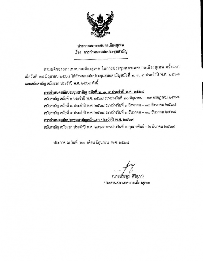 ประกาศกำหนดสมัยประชุมสภาสามัญ ประจำปี 2568