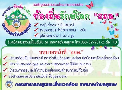 ประกาศ เรื่อง การรับสมัครอาสาสมัครท้องถิ่นรักษ์โลก(อถล.)
