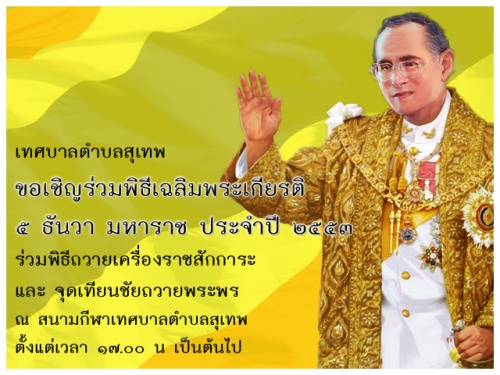ขอเชิญร่วมพิธีเฉลิมพระเกีรยติและถวายพระพร ๕ ธันวา มหาราช