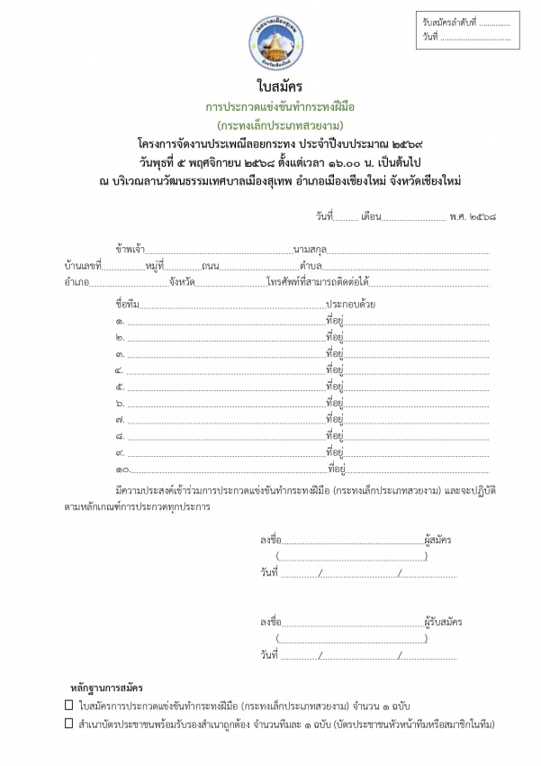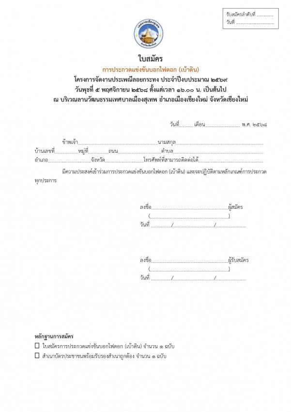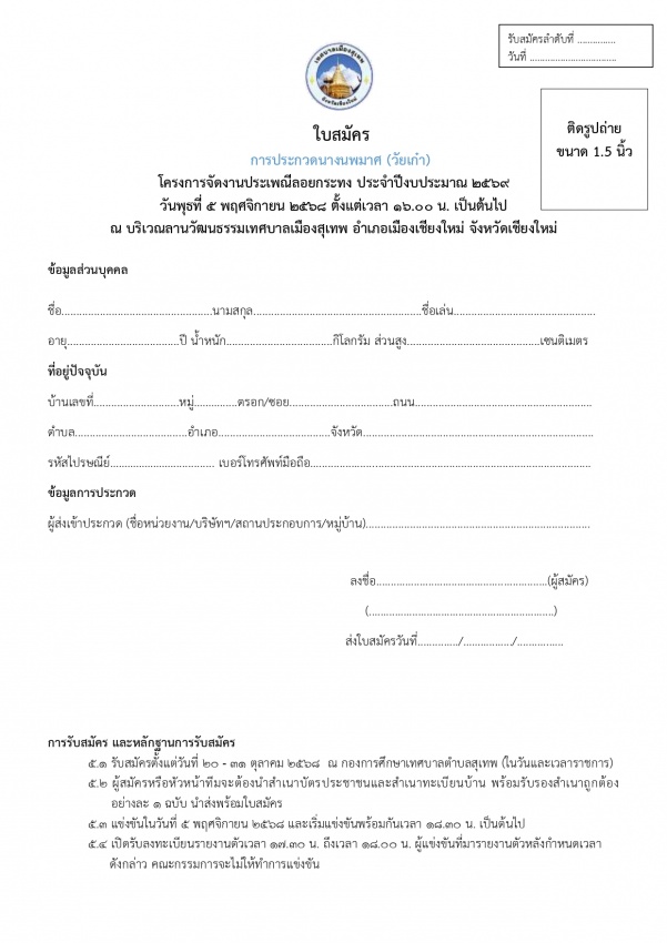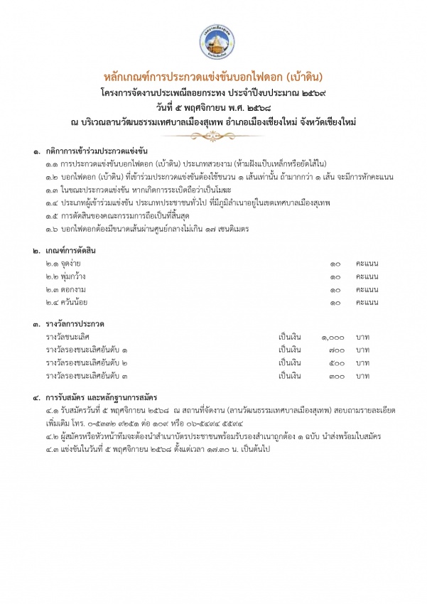 ประชาสัมพันธ์การรับสมัครการประกวดและการแข่งขัน เนื่องในประเพณีลอยกระทง ประจำปี 2568