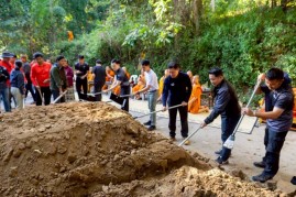 สุเทพ , ผู้ใหญ่บ้านทุกหมู่บ้าน , ประชาชนผู้มีจิตศรัทธา , หน่วยงานภาครัฐ และภาคเอกชนต่างๆ เข้าร่วมกิจกรรมวันนี้ โดยมี การส่งต่อดิน ทราย และวัสดุก่อสร้าง เพื่อช่วยกันซ่อมแซมเส้นทางที่เสียหาย เพื่ออำนวยความสะดวกและการบริการประชาชน สำหรับผู้สัญจรและผู้ที่จะมาศึกษาธรรมชาติ