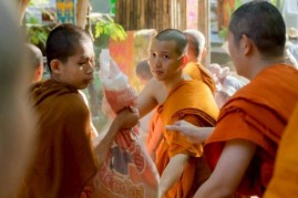 ถวายดอกไม้เป็นพุทธบูชา ท่ามกลาง