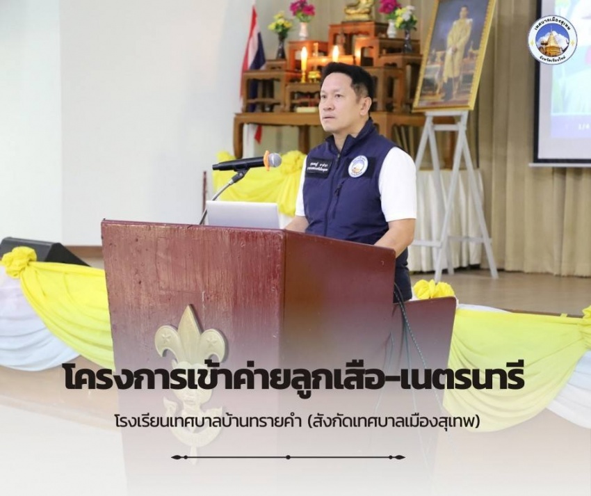 วันนี้ (3 กุมภาพันธ์ 2569) เทศบาลเมืองสุเทพ โดย นายสุรเชษฐ์ ตาคำมา นายกเทศมนตรีเมืองสุเทพ พร้อมด้วยคณะผู้บริหาร เข้าร่วมพิธีเปิดงานโครงการเข้าค่าย - ลูกเสือเนตรนารี โดย นางพรรณี เนตรตระสูตร ผู้อำนวยการโรงเรียนเทศบาลบ้านทรายคำ ได้จัดโครงการเข้าค่ายลูกเสือ?เนตรนารี เสริมสร้างวินัยและทักษะชีวิตให้นักเรียน ซึ่งถือเป็นส่วนหนึ่งของการส่งเสริมการเรียนรู้นอกห้องเรียน มีวัตถุประสงค์เพื่อส่งเสริมให้นักเรียนได้เรียนรู้ระเบียบวินัย ความสามัคคี ความรับผิดชอบ และการทำงานร่วมกันเป็นหมู่คณะ ตลอดจนฝึกทักษะการใช้ชีวิต การช่วยเหลือตนเอง และการมีจิตสาธารณะ ตามแนวทางกิจกรรมลูกเสือเนตรนารี กิจกรรมภายในค่ายประกอบด้วย การฝึกระเบียบแถว การเรียนรู้กฎ ระเบียบ และคำปฏิญาณลูกเสือ?เนตรนารี กิจกรรมฐานการเรียนรู้ การทำกิจกรรมกลุ่มสัมพันธ์ รวมถึงกิจกรรมเสริมสร้างคุณธรรม จริยธรรม ซึ่งช่วยพัฒนาผู้เรียนทั้งด้านร่างกาย อารมณ์ สังคม และสติปัญญา