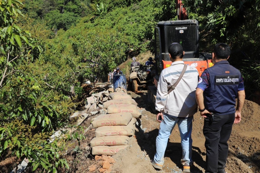 เทศบาลเมืองสุเทพ ลงพื้นที่ตรวจสอบงานก่อสร้างถนนสองร่องล้อ หมู่บ้านดอยปุย หมู่ที่ 11 ตำบลสุเทพ
