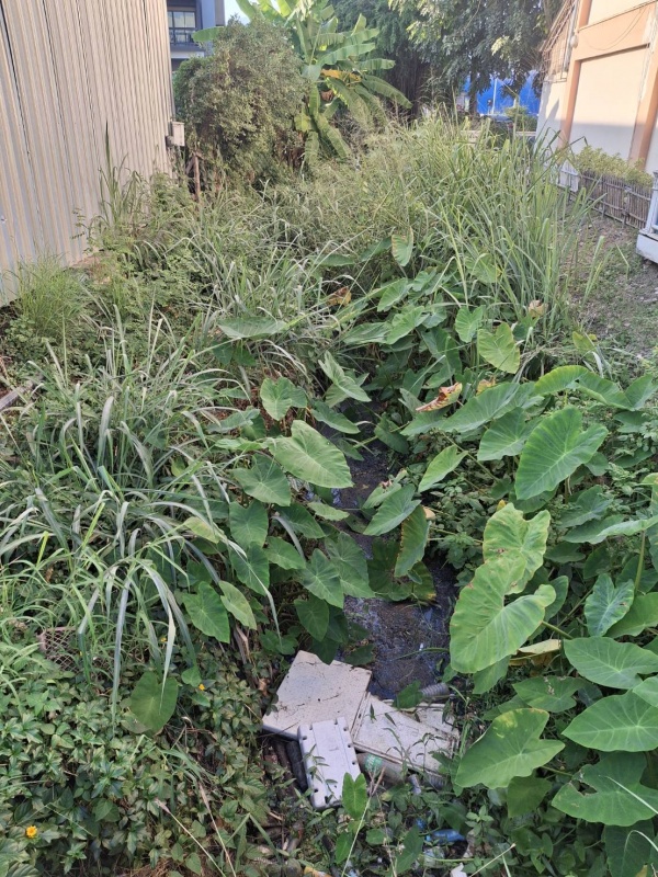 คลองมีน้ำเน่า และยุงเป็นจำนวน เศษขยะ ต้นไม้ ขึ้นขวางทางน้ำ ไม่ระบาย บริเวณข้างโรงแรมเวลสเนส เชียงใหม่ ติดโชว์รูม เกีย ถ.เชียงใหม่-หางดง ติดกับทาง โกโฮเซล