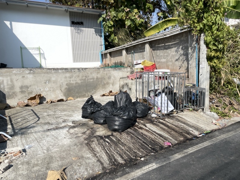 ที่ทิ้งขยะบริเวณกาดอุโมงค์ ส่งกลิ่มเหม็นและมีน้ำเน่าไหลมาที่ถนน ไม่มีการล้างหรือใส่ถังมิดชิด