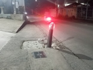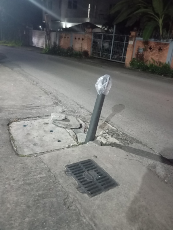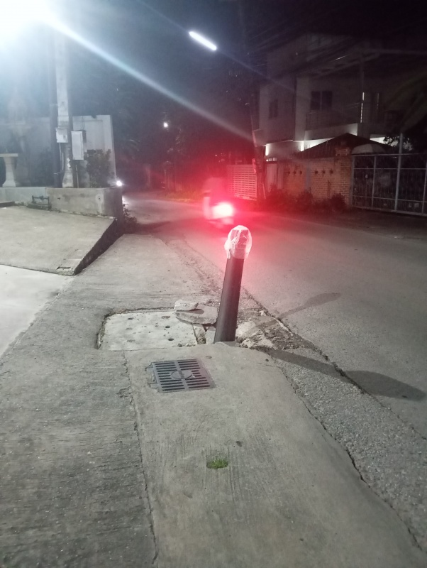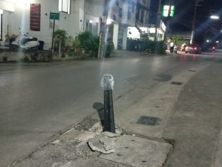 เนื่องจากฝาท่อระบายน้ำแตกที่หน้าร้านทำให้เกิดอุบัติเหตุรถตกหลุมเฉี่ยวชน
