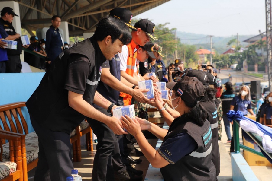 การป้องกันสุขภาพ: มอบหน้ากากอนามัยให้แต่ละหมู่บ้านเพื่อกระจายต่อให้แก่ประชาชนกลุ่มเปราะบางในพื้นที่